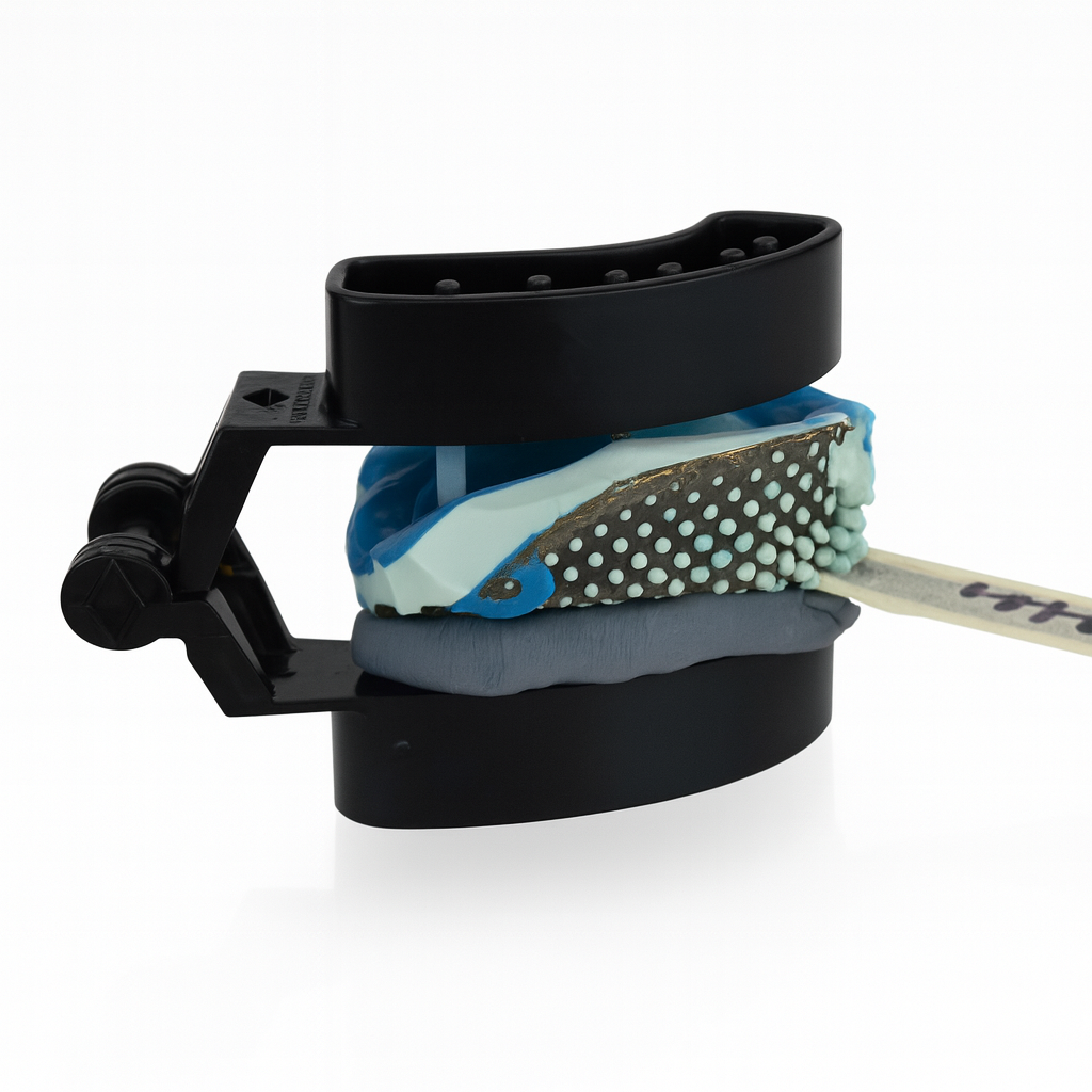 Use the mounting putty for cases that come with single-sided impressions. Roll the putty into a cylinder approximately the size of your finger and place it on the plastic base of the articulator.